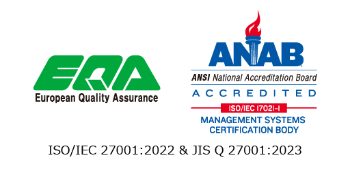 弊社は、ISMS(ISO/IEC 27001:2022 & JIS Q 27001:2023)の認証を取得し、情報セキュリティマネジメントシステムに基づき情報資産を適切に管理するとともに、全従業員が方針を遵守し、安全・安心なサービス提供に努めています。